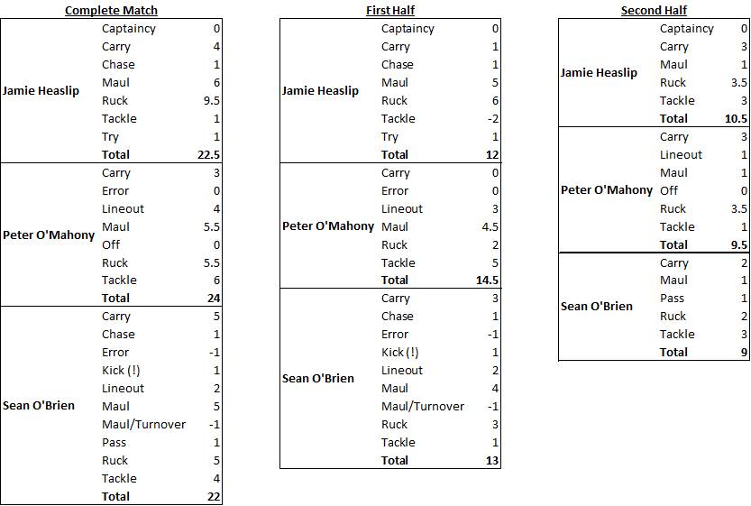 - Henry – soldiering away at Ulster and one of the most influential players at HEC level for a few years now. Yet he is 29 and plays in a position where we are stacked. But Schmidt saw something he liked (at Leinster, where he devised his HEC2012 final gameplan around nullifying Henry’s influence) and he was in. He was the workhorse of the backrow trio, tackled himself to a standstill (we are too lazy to add up, but we expect him to be Ireland’s #1 tackler over the series). It’s easy to say he will make way for O’Brien and Ferris if and when they are back, but he has been one of Ireland’s players of the series, for his consistency, and was especially effective in the away games